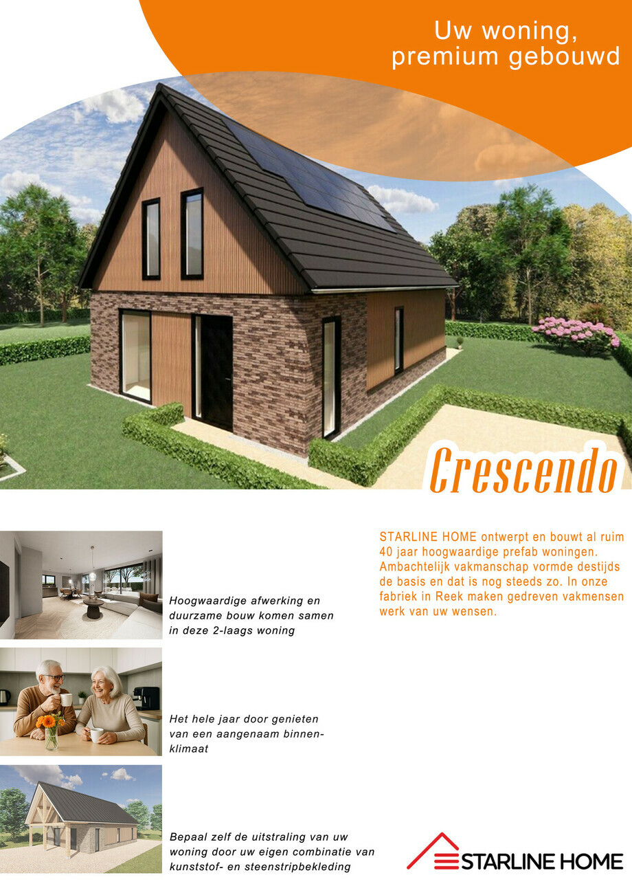 Ons model Crescendo is een nieuw ontworpen 2 laags woning dat voldoet aan de allerhoogste bouwkwaliteitseisen voor een betaalbare totaal prijs.