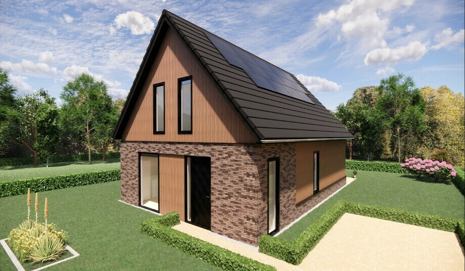 De woning is voorzien van hoogwaardige Stemid kunstofbekleding wat praktisch niet van echt hout is te onderscheiden. Dit in combinatie met van der Zanden steenstrip, waarin u zelf in overleg met de gemeente de verdeling tussen steen en kunststof kunt bepalen.