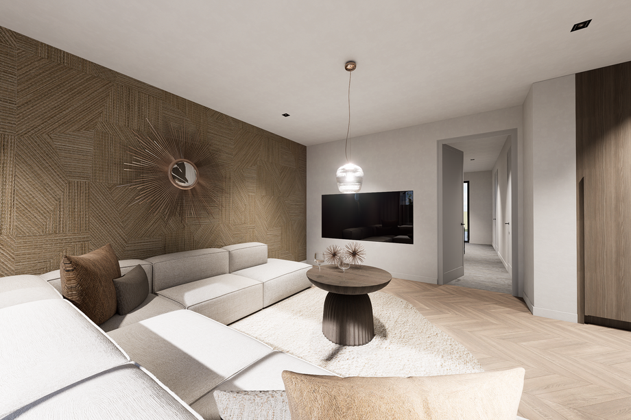 Dit is bij Starline Home altijd inclusief een Bruynzeel keuken, Sanicare badkamer meubelen, wand afwerking met glasweefselbehang, Agnes plafond en laminaat vloer.