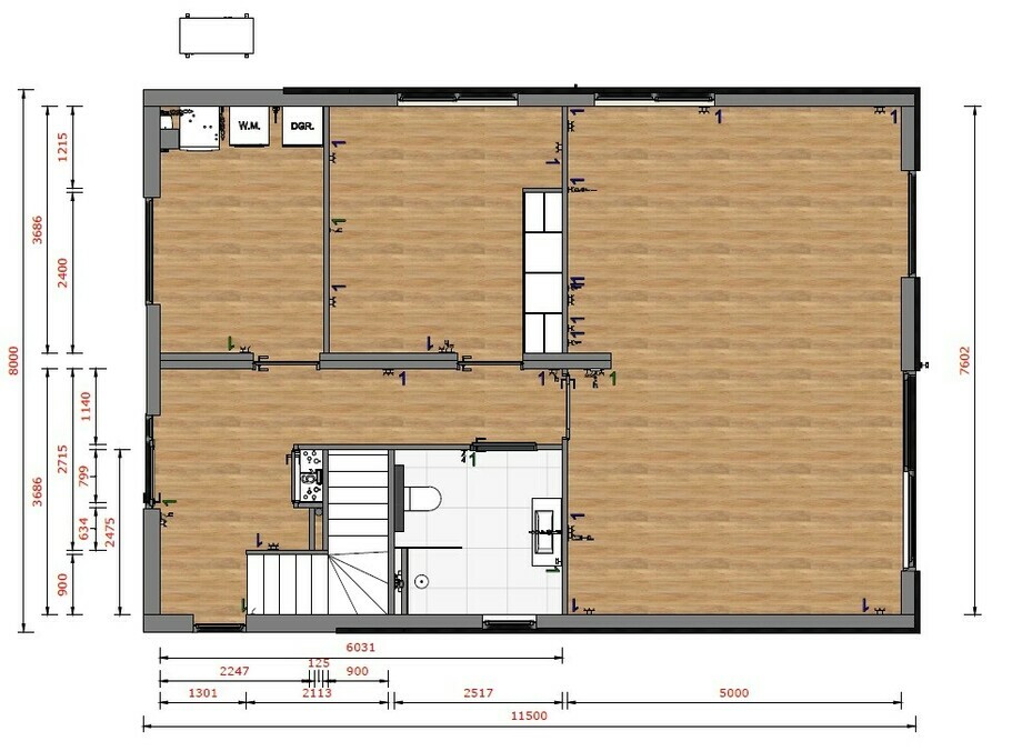 - Hoogte plafond: 2,60 meter begane grond - 3,52 meter eerste verdieping